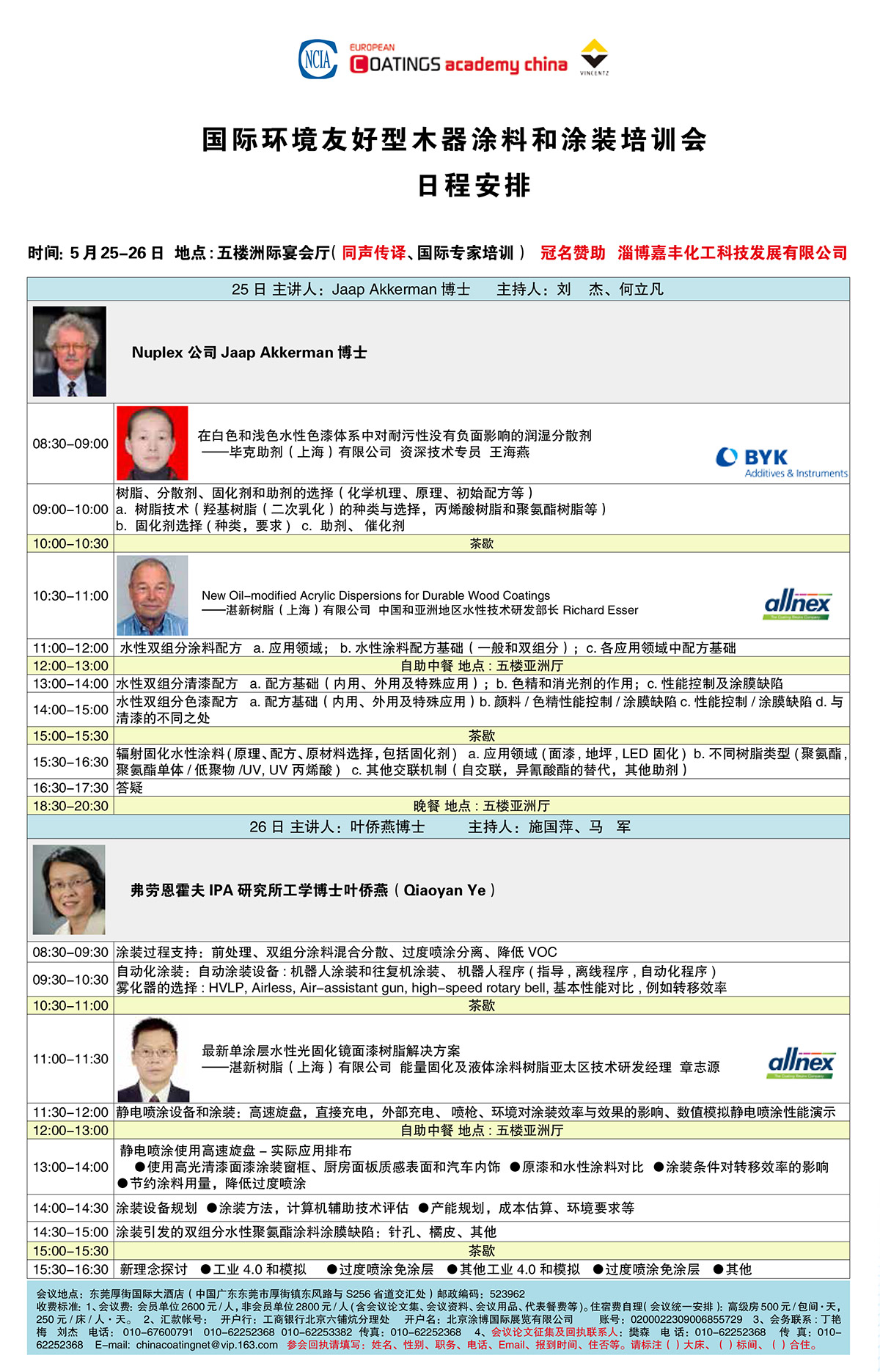 此次培訓(xùn)會旨在踐行綠色發(fā)展、推進(jìn)涂料行業(yè)的綠色發(fā)展的大背景下,學(xué)習(xí)國際先進(jìn)的環(huán)境友好型木器涂料及涂裝技術(shù),貫徹創(chuàng)新、開放、共享發(fā)展的理念,“引進(jìn)來,走出去”,特別邀請了歐洲木器涂料、涂裝領(lǐng)域的資深專家Nuplex 公司Jaap Akkerman 博士、弗勞恩霍夫IPA 研究所工學(xué)博士葉僑燕女士,以及BYK資深技術(shù)專員王海燕女士、湛新樹脂中國和亞洲地區(qū)水性技術(shù)研發(fā)部長Richard Esser和能量固化及液體涂料樹脂亞太區(qū)技術(shù)研發(fā)經(jīng)理章志源先生與學(xué)員進(jìn)行環(huán)境友好型木器涂料和涂裝國際先進(jìn)技術(shù)的培訓(xùn)交流。未來兩天將會圍繞水性雙組分涂料、水性UV涂料等環(huán)境友好型涂料的應(yīng)用領(lǐng)域、不同應(yīng)用領(lǐng)域針對性的配方設(shè)計及機理,以及自動化智能涂裝技術(shù)與涂裝設(shè)備,為與會學(xué)員帶來當(dāng)前世界最先進(jìn)的技術(shù)和理念。此次培訓(xùn)為我們了解國際先進(jìn)技術(shù)提供了有益的幫助,這也是我們開展培訓(xùn)創(chuàng)新的一次良好實踐。