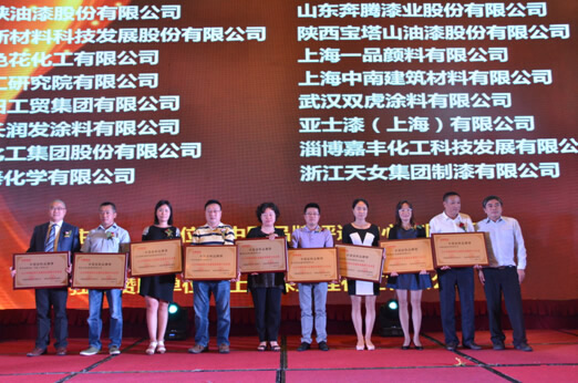 2014年 8月27日,“2013中國涂料品牌榜頒獎典禮”在沈陽隆重舉行。中國涂料工業協會、中國房地產研究會、中華環保聯合會、中國涂料產業技術創新戰略聯盟等多家行業協會的領導出席了頒獎典禮并擔任頒獎嘉賓。