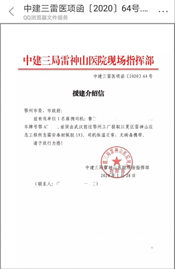 近日,在獲悉武漢雷神山醫(yī)院急需建筑密封膠消息后,集泰股份免費(fèi)捐贈項(xiàng)目所需建筑密封膠類產(chǎn)品,馳援雷神山醫(yī)院建設(shè),集泰團(tuán)隊(duì)的反應(yīng)速度與安泰建筑膠產(chǎn)品品質(zhì)獲項(xiàng)目部認(rèn)可。