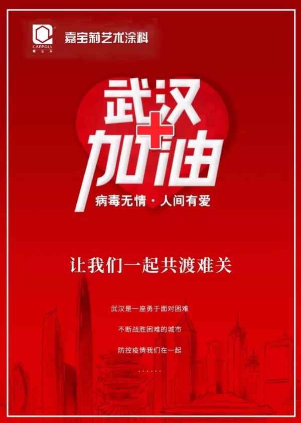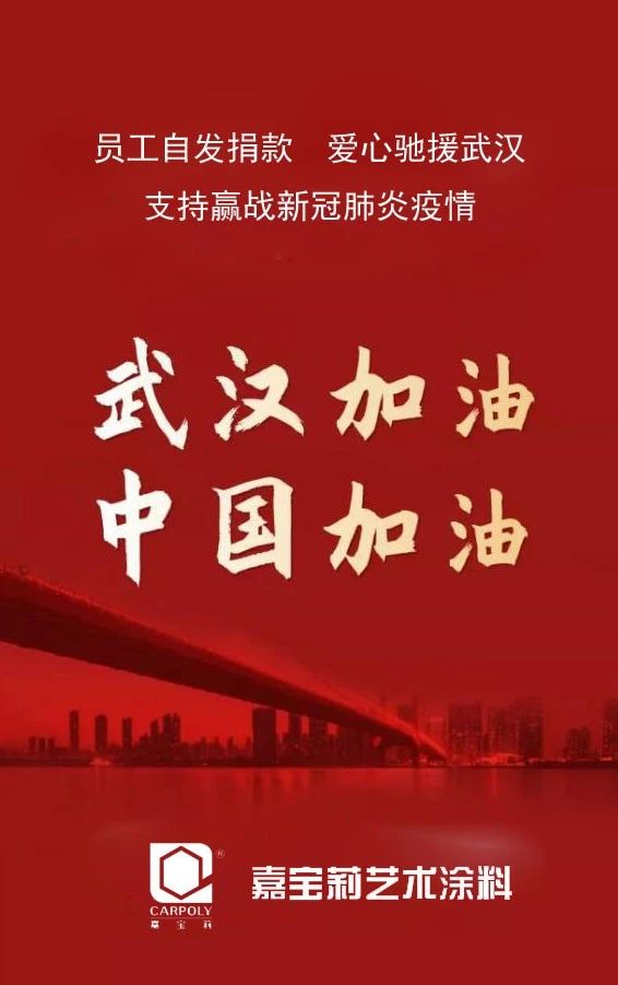 新型冠狀病毒肺炎疫情牽動著全國人民的心。隨著疫情的不斷蔓延,為助力武漢人民共渡難關(guān),助力全國人民打贏這場來勢洶洶的疫情戰(zhàn),嘉寶莉藝術(shù)涂料員工也積極行動了起來。由于疫情原因,公司尚未開工,大家便在微信群中自發(fā)組織捐款。