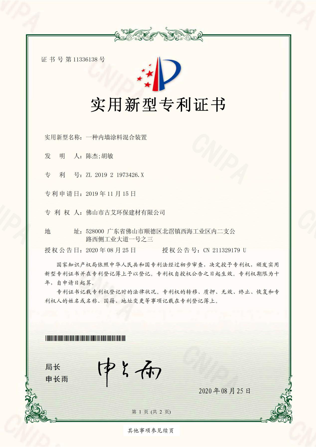 熱烈祝賀艾立德建材榮獲8項實用新型專利證書