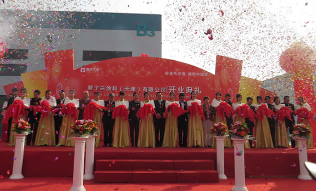 君子蘭涂料(天津)有限公司新廠開業典禮在2014年10月15日上午隆重舉行,來自中國涂料協會、木門協會和君子蘭集團上海、成都、廣東等分公司君子蘭人歡聚一堂、共襄盛舉,共同慶祝君子蘭涂料(天津)有限公司隆重開業。