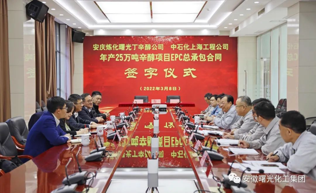3月8日,安慶煉化曙光丁辛醇化工有限公司年產25萬噸辛醇項目EPC總承包合同簽字儀式舉行。