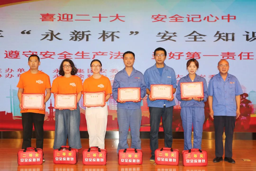 2022年6月22日,由公司安委會舉辦的“喜迎二十大,安全記心中”“永新杯”安全知識競賽在九樓多功能廳舉行。來自公司機關、永新涂料、永新大貿、永新置業、永新管業共6支參賽隊參賽。舉辦此次活動旨在強化全員安全紅線意識,普及安全知識,提高安全素養,推動公司安全文化建設,提高落實主體責任的能力。
