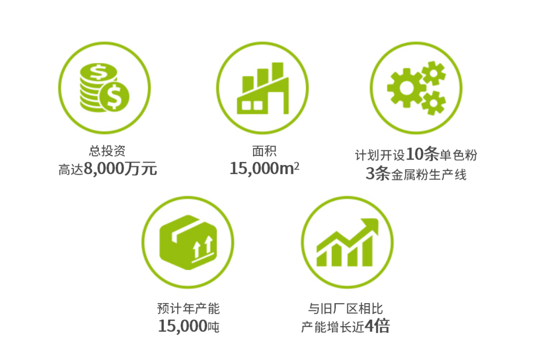 老虎新材料自主建設(shè)的眉山新工廠總投資高達(dá)8,000萬元,面積15,000㎡,計(jì)劃開設(shè)10條單色粉、3條金屬粉生產(chǎn)線,預(yù)計(jì)年產(chǎn)能15,000噸,與舊廠區(qū)相比產(chǎn)能增長近4倍。自此,老虎新材料坐擁四川眉山,聯(lián)合江蘇太倉、廣東清遠(yuǎn)生產(chǎn)基地,形成中國三大地域支柱輻射全國。