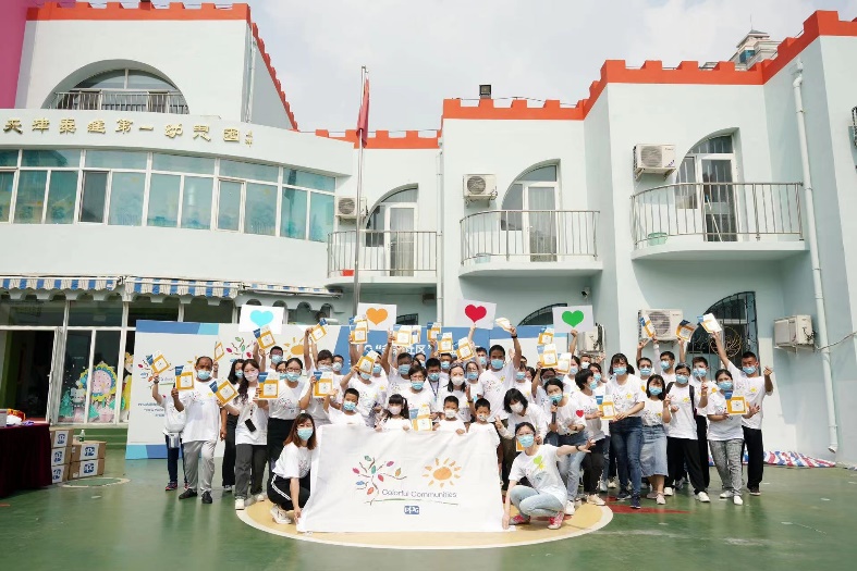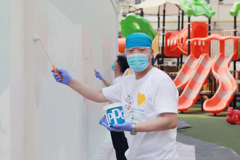 此次”New Paint for a New Start”活動(dòng)共有近50名天津工廠員工志愿者參加,完成了對(duì)天津市泰達(dá)第一幼兒園的色彩翻新改造,該活動(dòng)是PPG“多彩社區(qū)”項(xiàng)目的重要組成部分