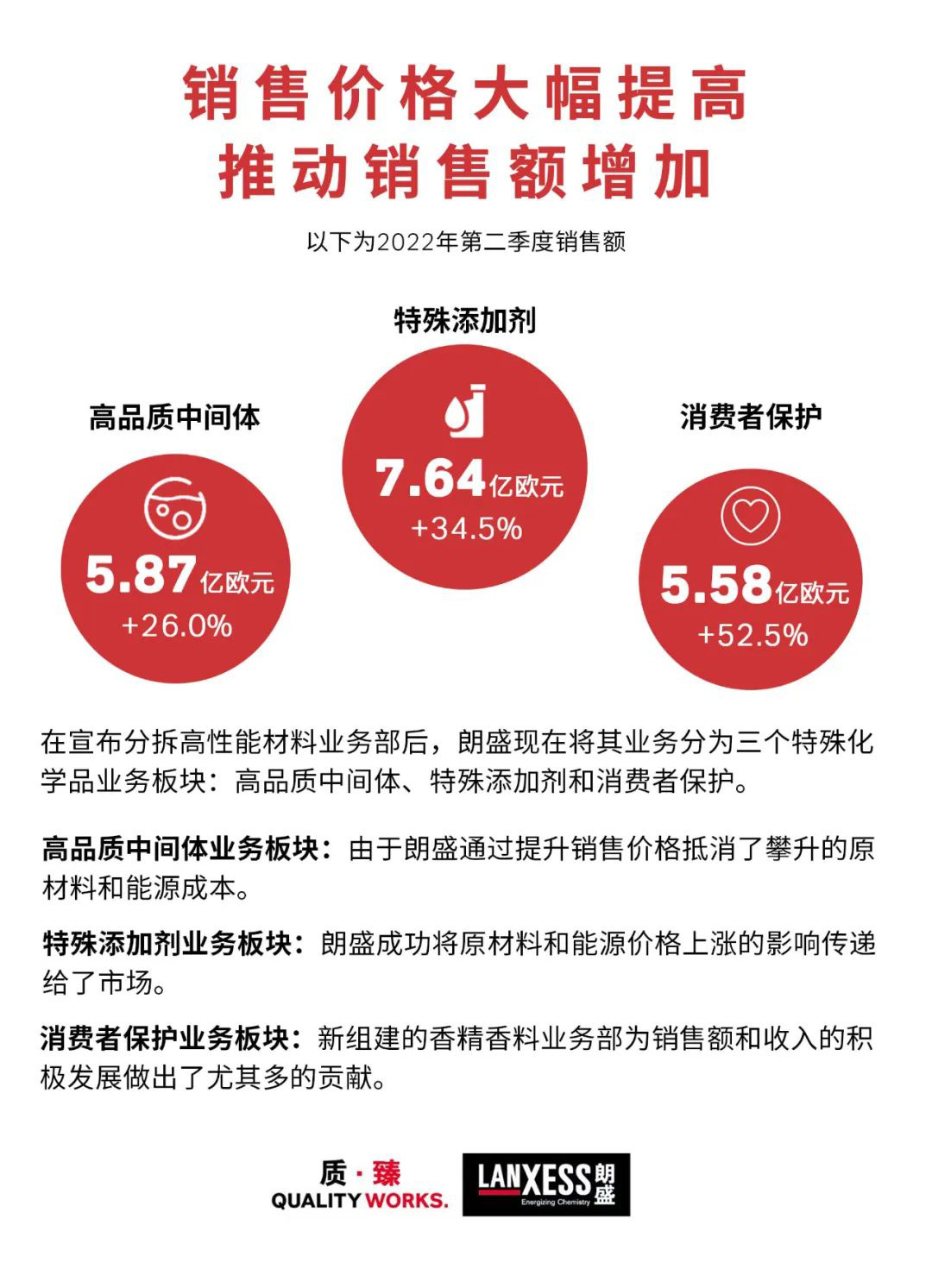 2022年8月9日,朗盛發(fā)布了第二季度財報。在原材料和能源成本上漲、物流條件困難的嚴峻形勢下,朗盛第二季度收入再度增加,繼續(xù)保持穩(wěn)健發(fā)展。