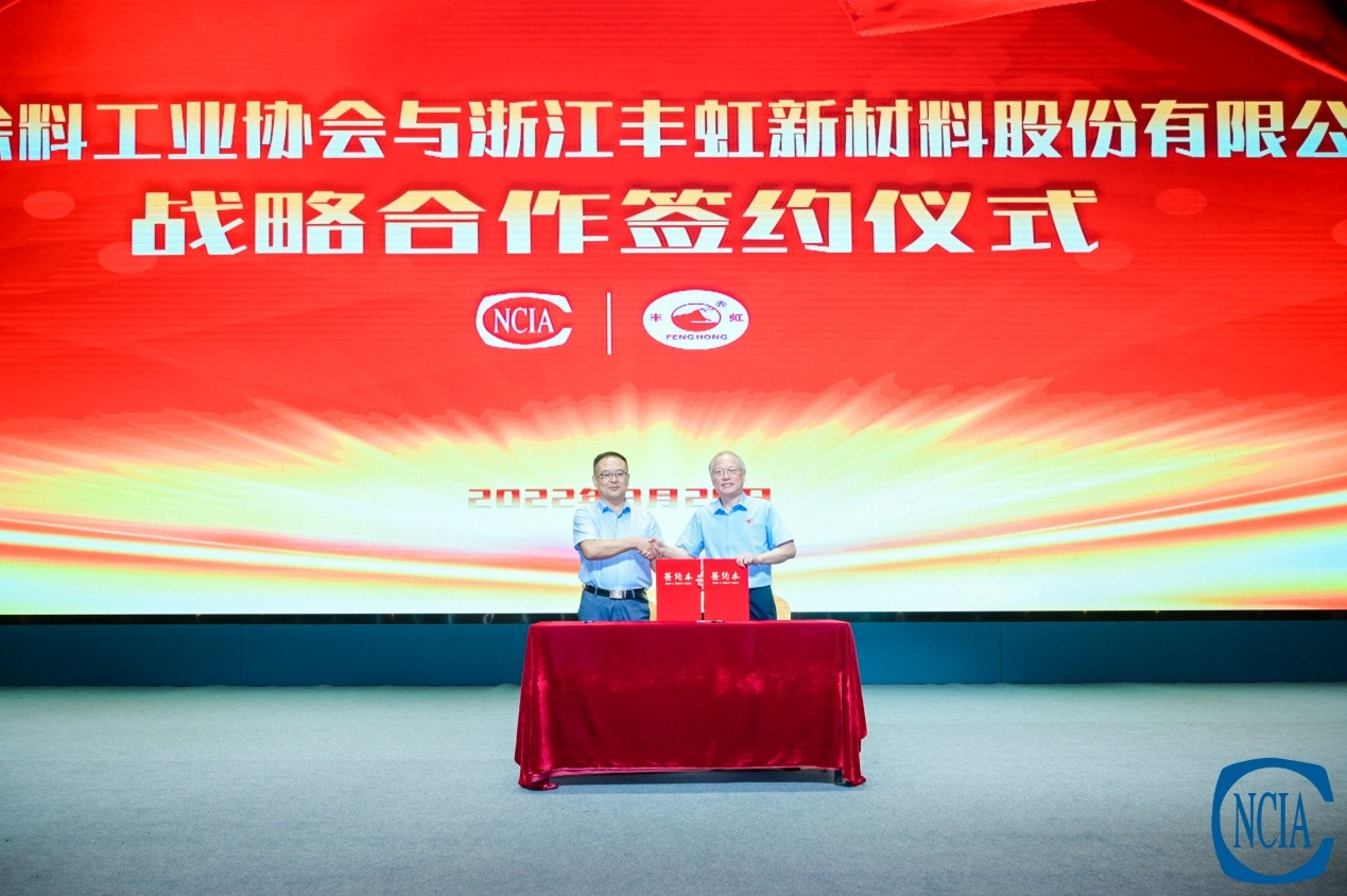 8月25日,中國涂料工業協會副秘書長趙中國與浙江豐虹新材料股份有限公司總裁兼總工王春偉作為雙方代表共同簽署戰略合作協議。