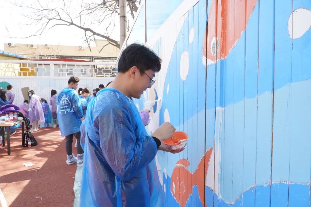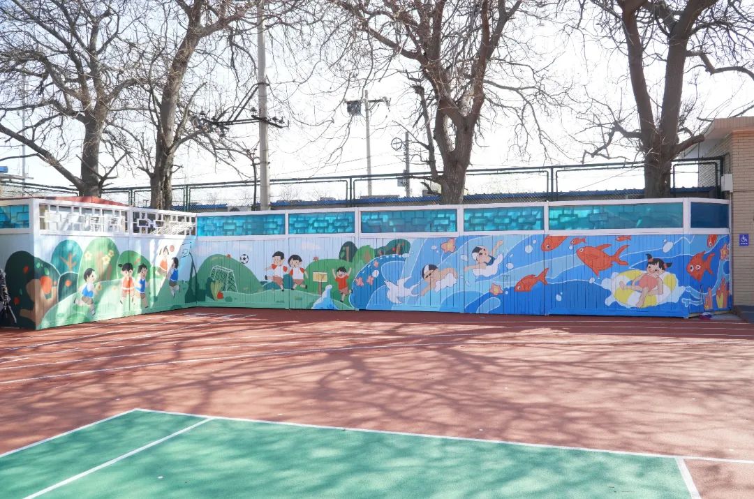 2022年4月3日,在北新建材團(tuán)委的籌劃組織下,旗下“青春北新”志愿者服務(wù)總隊(duì)聯(lián)合清華大學(xué)“粉刷匠”工作室來到學(xué)校,開展公益性美化粉刷活動(dòng),選用色彩豐富、健康環(huán)保的“龍牌漆”對(duì)操場(chǎng)四周的墻面進(jìn)行美化。綠色的草坪、飛翔的鴿子、自由的魚兒、快樂玩耍的小朋友……一幅幅色彩亮麗的畫作躍然墻上。歷經(jīng)粉刷改造的操場(chǎng)充滿了盎然生機(jī),成為學(xué)校一道靚麗的風(fēng)景線。