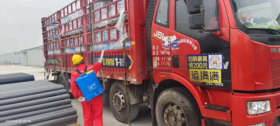 ◆3月15日,集泰水性漆第一輛貨運專車到達(dá)現(xiàn)場