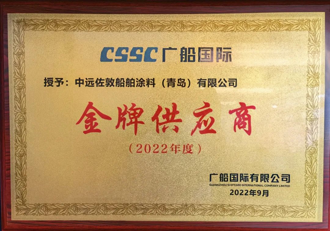 9月28日,中國船舶集團(tuán)廣船國際有限公司(簡稱“廣船國際”)在廣州南沙舉辦2022年優(yōu)秀供應(yīng)商表彰大會上,對2021年-2022年的優(yōu)秀供應(yīng)商進(jìn)行了表彰,中遠(yuǎn)佐敦獲頒“金牌供應(yīng)商”。