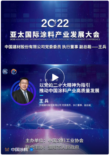 大會期間,中國建材股份有限公司黨委委員/執(zhí)行董事/副總裁王兵帶來《以黨的二十大精神為指引推動中國涂料產(chǎn)業(yè)高質(zhì)量發(fā)展》的精彩演講。他表示,2022亞太國際涂料產(chǎn)業(yè)發(fā)展大會召開的節(jié)點十分關(guān)鍵。