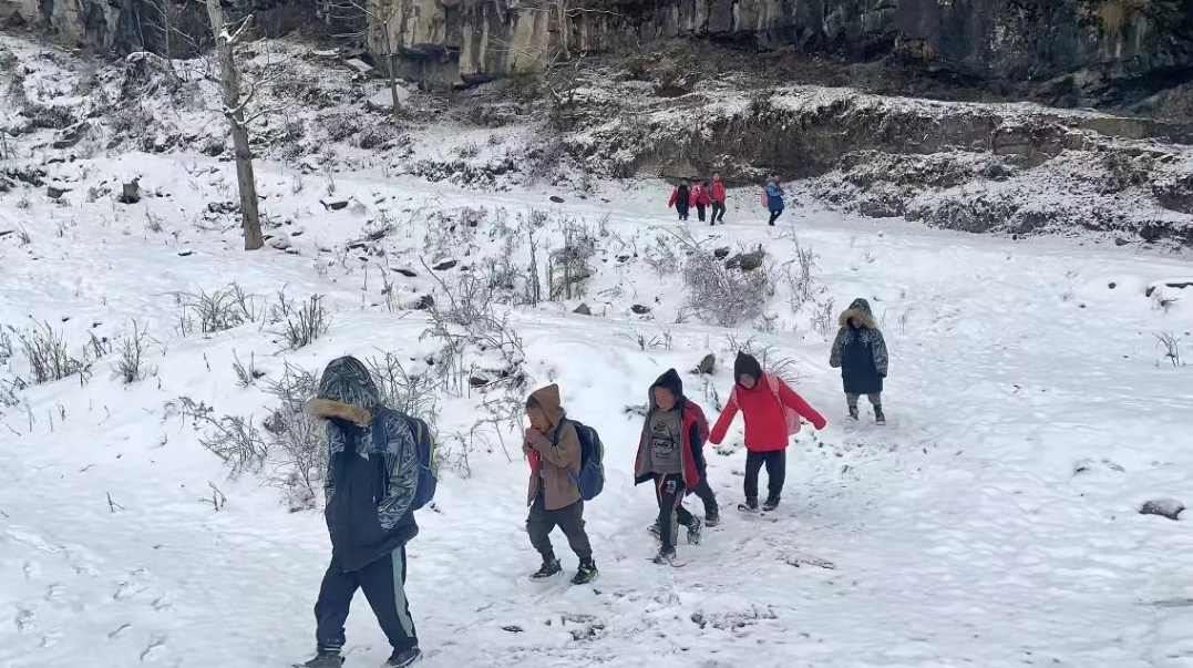踏入冬季,孩子們需要冒著嚴寒大雪,走過漫長崎嶇的山路,在冰冷刺骨的教室里上課,這里沒有暖氣、沒有暖爐,孩子們?nèi)悦刻靾猿郑冗^一個個冬天。但今年的冬季卻比以往更加難熬,因為小學的屋頂漏水,孩子們無法正常上課了。
