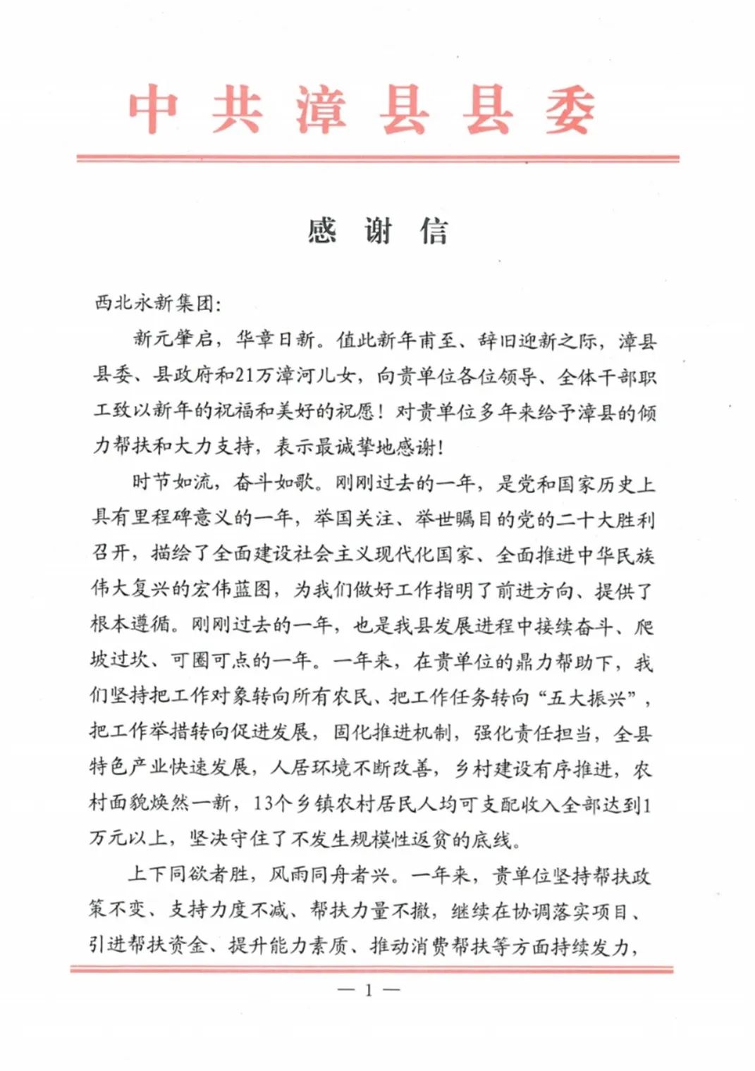 公益|西北永新:鄉村振興勇擔當 感謝信里顯真情