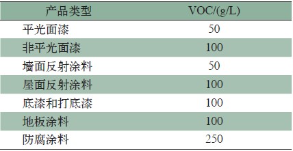GS-11和GS-03,在新版本的GS-11 Green Seal Standard for PAITNS AND COATIGNS, 3rd Edition January 1, 2010中,已經合二為一,全部遵照GS-11 的2010年版本執行。對于VOC的限制,除去水和調色著色劑之外,規定如表2。如果是零售終端調色系統產品,在表2數據上可以再放寬50 g/L。