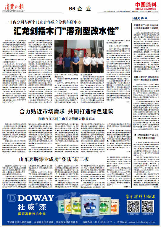 《中國涂料報》(電子版)的一切內容(包括但不限于文字、圖片、PDF、圖表、標志、標識、商標、版面設計、專欄目錄與名稱、內容分類標準以及為讀者提供的任何信息)僅供中國涂料信息網讀者閱讀、學習研究使用,未經中國涂料雜志社有限公司及/或相關權利人書面授權,任何單位及個人不得將《中國涂料報》(電子版)所登載、發布的內容用于商業性目的,包括但不限于轉載、復制、發行、制作光盤、數據庫、觸摸展示等行為方式,或將之在非本站所屬的服務器上作鏡像。否則,中國涂料雜志社有限公司將采取包括但不限于網上公示、向有關部門舉報、訴訟等一切合法手段,追究侵權者的法律責任。