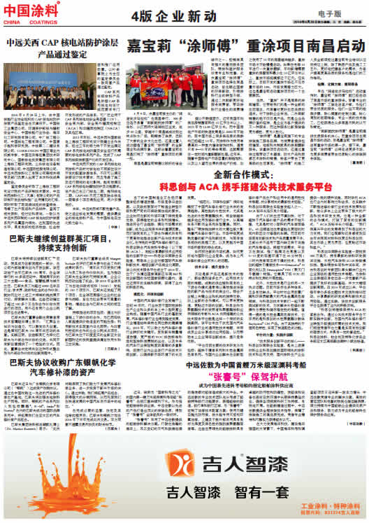 中國涂料報(bào) 2016年4月29日