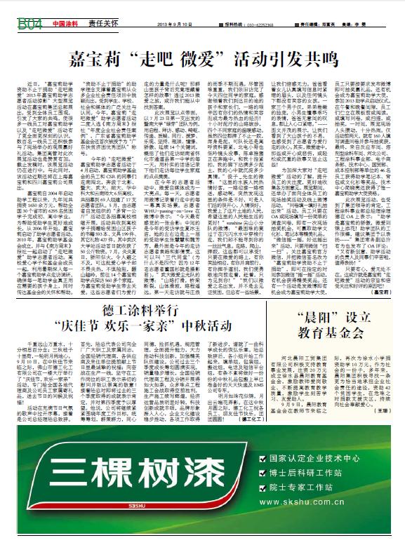 《中國涂料報》(電子版)的一切內容(包括但不限于文字、圖片、PDF、圖表、標志、標識、商標、版面設計、專欄目錄與名稱、內容分類標準以及為讀者提供的任何信息)僅供中國涂料信息網讀者閱讀、學習研究使用,未經中國涂料雜志社有限公司及/或相關權利人書面授權,任何單位及個人不得將《中國涂料報》(電子版)所登載、發布的內容用于商業性目的,包括但不限于轉載、復制、發行、制作光盤、數據庫、觸摸展示等行為方式,或將之在非本站所屬的服務器上作鏡像。否則,中國涂料雜志社有限公司將采取包括但不限于網上公示、向有關部門舉報、訴訟等一切合法手段,追究侵權者的法律責任。