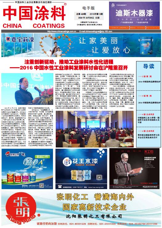注重創(chuàng)新驅(qū)動,推動工業(yè)涂料水性化進(jìn)程——2016 中國水性工業(yè)涂料發(fā)展研討會在滬隆重召開