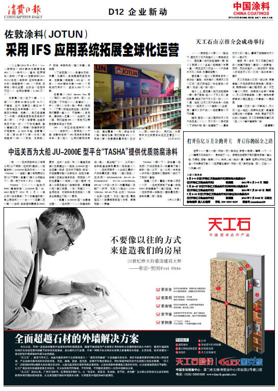 《中國涂料報》(電子版)的一切內容(包括但不限于文字、圖片、PDF、圖表、標志、標識、商標、版面設計、專欄目錄與名稱、內容分類標準以及為讀者提供的任何信息)僅供中國涂料信息網讀者閱讀、學習研究使用,未經中國涂料雜志社有限公司及/或相關權利人書面授權,任何單位及個人不得將《中國涂料報》(電子版)所登載、發布的內容用于商業性目的,包括但不限于轉載、復制、發行、制作光盤、數據庫、觸摸展示等行為方式,或將之在非本站所屬的服務器上作鏡像。否則,中國涂料雜志社有限公司將采取包括但不限于網上公示、向有關部門舉報、訴訟等一切合法手段,追究侵權者的法律責任。