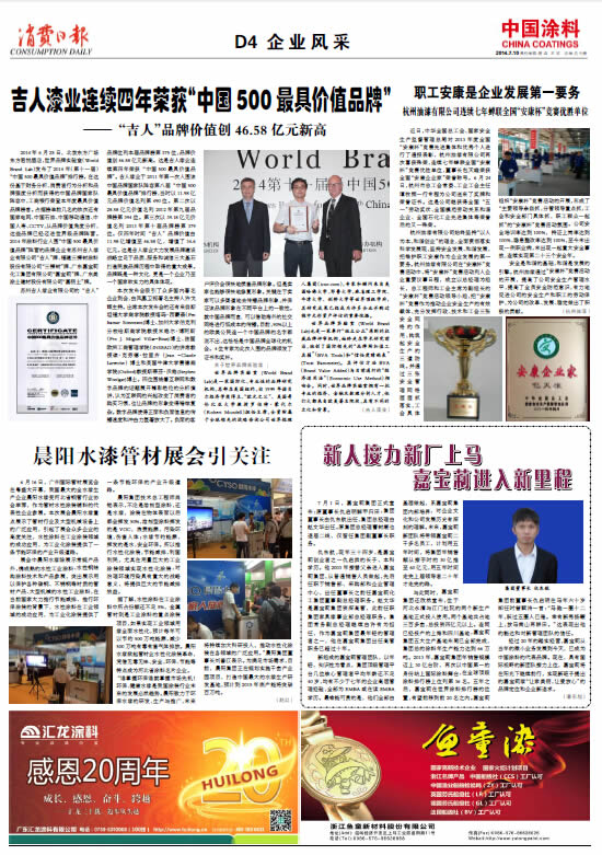 吉人漆業(yè)連續(xù)四年榮獲“中國500最具價(jià)值品牌”