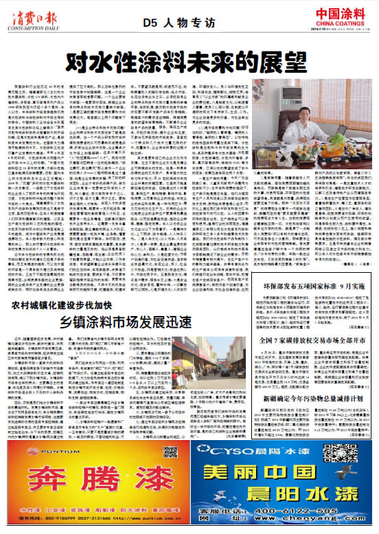 中國涂料報 2014年7月10日 星期四